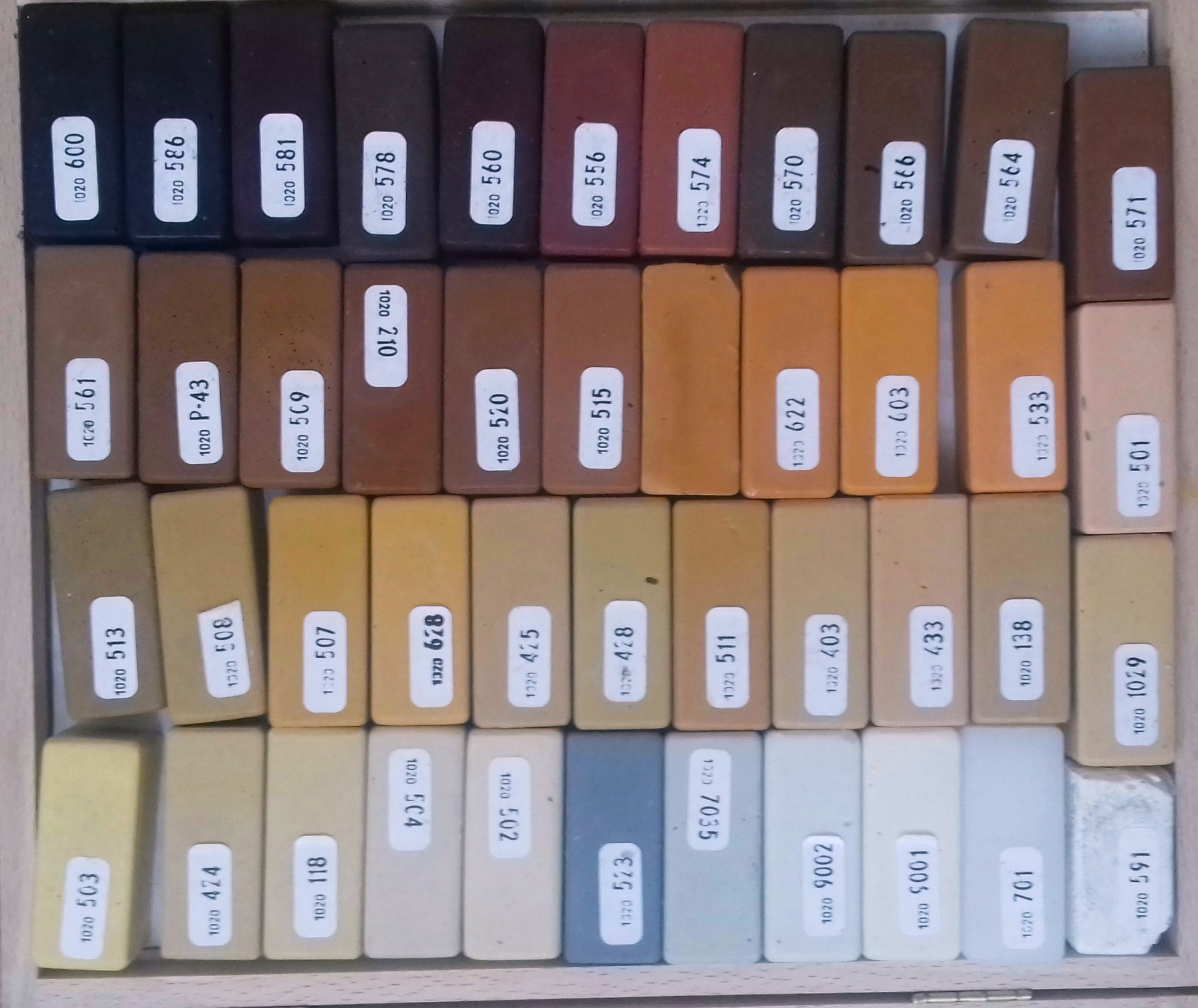 zemitými a oxidačnými farbami. Do miesta poškodenia sa nanášajú tavením. Dobre